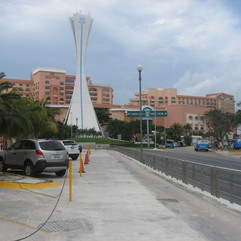Le bus a roulé sous un pont avec des avions au-dessus de nous, un spectacle impressionnant. Les immenses hôtels, les palmiers, le boulevard animé, les locaux prenant une pause sur le gazon... et entre deux hôtels, la première vue sur la mer turquoise, était tout simplement à couper le souffle.